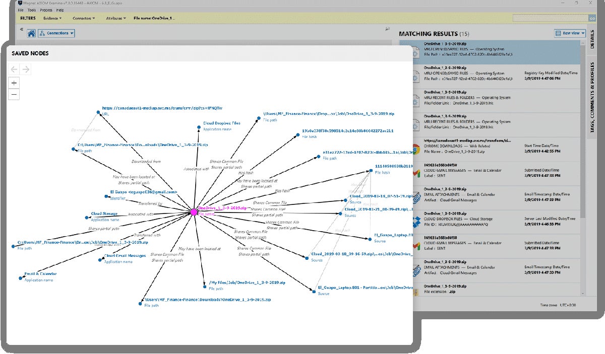 - Data visualization: AXIOM Cyber shows connections between various artifacts.