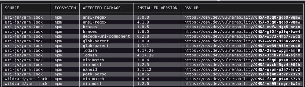 - OSV-Scanner: Best web and app scanner for library dependency