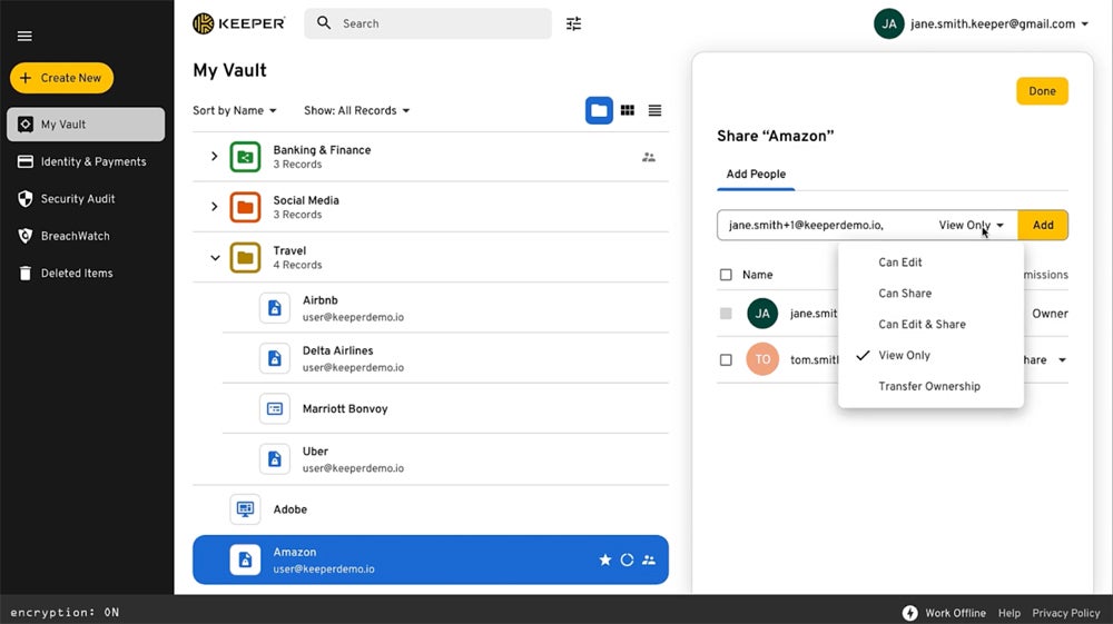 While Dashlane scored higher on overall ease of use, Keeper provides more password import choices than Dashlane. Its Automatic Importer Tool scans and adds web browsers to saved accounts without the need to export data to CSV files. Its features, such as password creation, auto-fill, and auto-save, are simple and straightforward. You can easily download Keeper’s browser extension and install the desktop app separately.