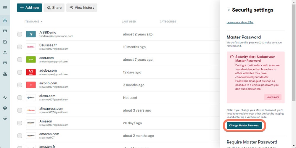 Dashlane uses thorough breach scanning to provide password health scores, security alerts, and dark web monitoring. It employs security features like 256-bit AES encryption and 2FA, with master passwords encrypted using PBKDF2. Their password health checker and real-time dark web surveillance also improve overall security. Dashlane’s VPN service distinguishes itself from Keeper by providing an additional degree of protection and privacy.
