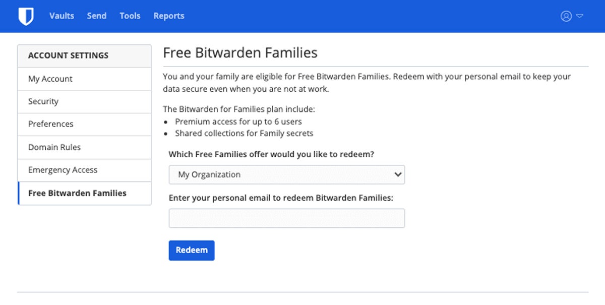 Many organizations will stick with the economical Teams license for Bitwarden that supports user groups and Duo 2FA and connects with Active Directory. Upgrade to the still-inexpensive Enterprise license to gain custom roles, organization-wide policies, free family plans, and self-hosted vaults and integrate with identity providers.