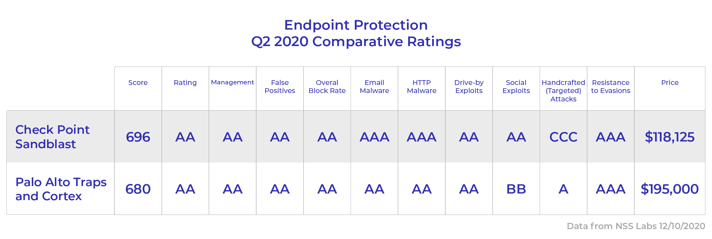 Check Point SandBlast and Palo Alto Cortex XDR both made our list of the best EDR products, and with good reason: both have posted strong scores in rigorous NSS Labs testing over the last couple of years. Both received a AA rating from NSS Labs this year, along with four other vendors, the highest grades received this year (see chart below).