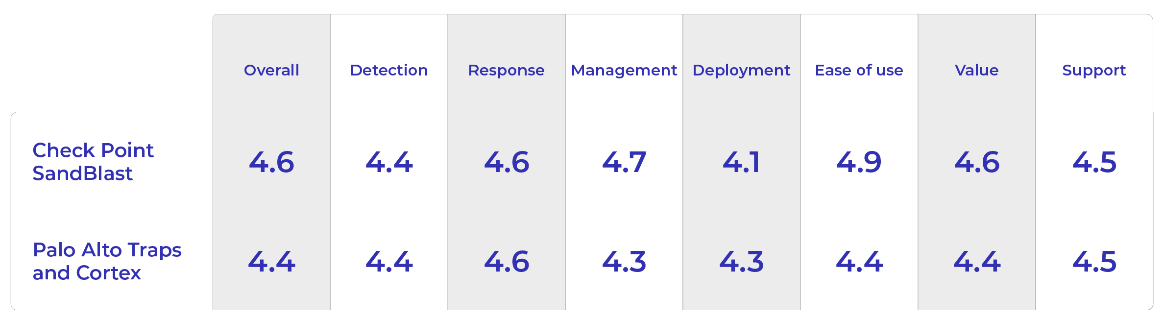 Both products get some of the highest user review scores in the industry. Check Point users praise SandBlast’s ease of use and strong security. Palo Alto users offer plenty of praise there too, but also express appreciation for features like automated investigation and root cause analysis.