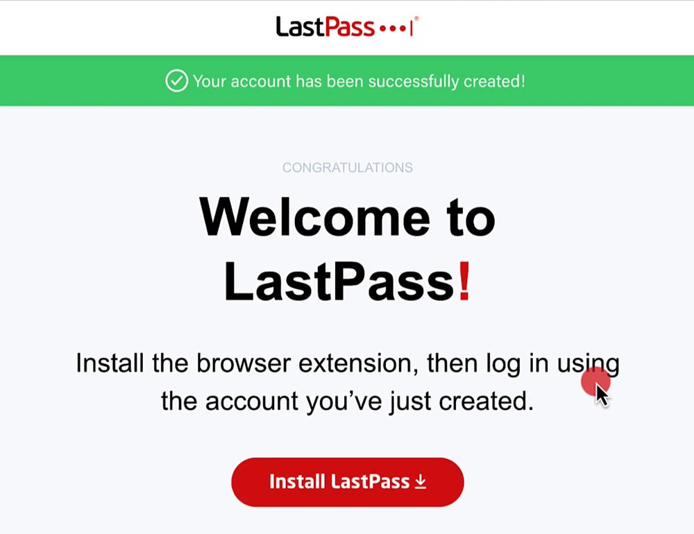Once your account is set up, you must install the LastPass browser extension for easier access.